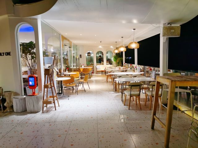 住店quan第16家 🏖️180度海景咖啡厅📸 🏠ONLYONE颖海咖啡位于环岛南路264号,坐拥胡里山炮台旁的海边。🎁宽敞明亮的用餐空间、异域风情的圆形大拱门、莫兰迪色调的装修风格,有一种穿越到圣托里尼的感觉,梦幻又浪漫❤️。 👀咖啡厅比我想象中大了不少,有露天天台、靠海边的观景区和室内空调区,可以根据自己的喜好选择位置。餐厅还不停地播放周杰伦的歌曲🎶,满满的回忆杀。 🌿仲夏夜,凉风习习,在海边的咖啡厅,吹着海风、听着浪花声、放眼一望无际的海景、欣赏美轮美奂的夜景,好好让自己放松下,静下心来好好品味慢生活,超惬意超美好🌸。 🍵抹茶拿铁:感觉牛奶放了不少,喝起来不怎么苦涩,反而略微有点甜,很喜欢这样的醇厚香甜口感,还有清香扑鼻的抹茶味。 💰人均大约20元,这家不仅仅还有提供咖啡,听说也有提供正餐,以后有机会去试试😍。