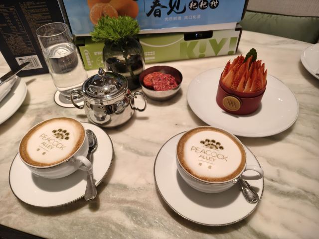 在酒店5F,大堂吧下午茶甜咸搭配绝妙!旁边还有个户外花园,Sunny He经理的贴心服务让午后时光更添温暖,必须二刷!还有总监Young,过来跟我聊天很不错呢,还带我们参观酒店,特别有热情,超级推荐大家过来呢,红丝绒蛋糕是这里的特色,卡布奇诺也好看,有羿庭的logo呢,特别出片!🌹
