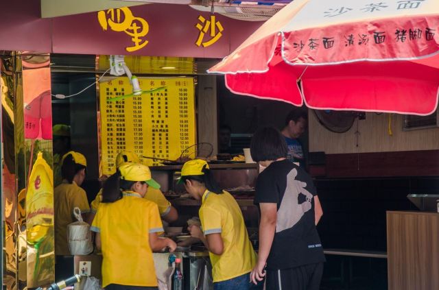 young-liu虽然四里沙茶面有好几家,但我个人最喜欢的还是湖滨四里的这家。真的,每一次路过湖滨四里,店门口都被围得熙熙攘攘。没错了,都是为了这碗橙红鲜亮的沙茶汤而来。80%都是本地狼,偶尔出现的游客,我得夸一句:识货。点单、煮面、这么多年了,阿姨们显然很有默契,最佩服她们的记忆力,不管你加了几样,她都能记住。沙茶面的码料就放在橱窗里,一个种类一盘,清清楚楚地一字排开,下水、海鲜、肉羹、素菜,基本上囊括了平常沙茶面里能出现的所有食材。墙上的菜单明码标价,想吃什么自个拿捏着食量加。喜欢四里的人多半是冲着这碗汤而来,红艳鲜亮、香浓热辣,浓稠的汤头是调味好手,所有的食材在里头泡一泡,并有了不同的滋味。