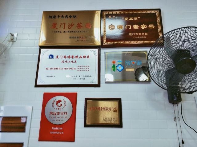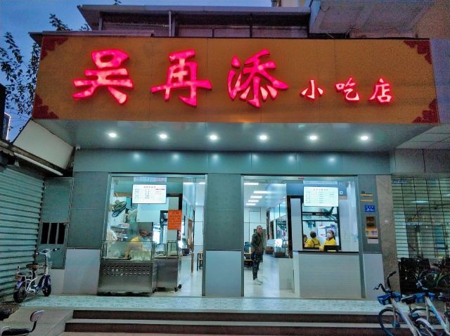 franceteam过节期间人气比较旺的一家店,enmm…这个时候,貌似选择也不多,有得吃就很满意了。今日份晚餐——吴再添小吃店。 店址位于美湖路25-6,地址虽是在美湖路,但实际位置是在禾祥西路上,锅庐私房菜的边上,开了几年的老店了,再加上人所皆知的招牌,挺好找的。 [薄荷]环境: 店内环境重新装修了一遍,比之前更加明亮。面积在小吃店里,算是比较大的。门口是收银台,要吃什么,先在这里买单取饭票。往里两侧便是各个档口,拿票换菜,一切自助。座位是常见的四人方桌与条凳,彼此间距有些窄,但还不至于让人感到拥挤难受。通风不错,整体很通透,空气很流通,没有难闻的气味。灯光明亮,几面奖牌,几张宣传照,除此之外没有多余的装饰。整体感受,整洁明亮,简洁质朴。 |沙茶面^8块钱,只能加4-5片瘦肉了。相对别家的或辣或甜的味道,感觉他家咸味会更突出一点。汤底算是比较浓郁的。 |肉粽^除芋包外,肉粽是他家所有菜品里,我最喜欢的了。干贝、三层肉、板栗(香菇和虾米似乎找不到了),配料给的还是比较实在。这次的三层肉有点偏肥了。蘸着芥辣酱入口,还是熟悉的味道。 |肉羹汤(大)^味精下得比较多,汤底味道比较浓,有人喜欢,有人不喜欢。肉羹粉不多,口感比较扎实。 总评,今天铁了心要在外面吃。结果,逛了一圈,大部分餐厅未开,大商场提前关门。几家开门的餐厅,里面空荡荡的,老板都在门口卖菜了…到处一片凄风苦雨,搞得都没心情进去了。最后,找了这家算是比较有人气的店,聊胜于无吧!从小吃到大的东西,味道还是那个味道,称不上好吃难吃,习惯而已。有段时间没来,价格涨了不少。吴老先生驾鹤西去,老店也迎来了新开始,环境变好了许多,但实惠二字,却也有点名不符实了。人浮于世,太多无可奈何,那家厦门人心中,好吃实惠的吴再添似乎也很难再找回了。
