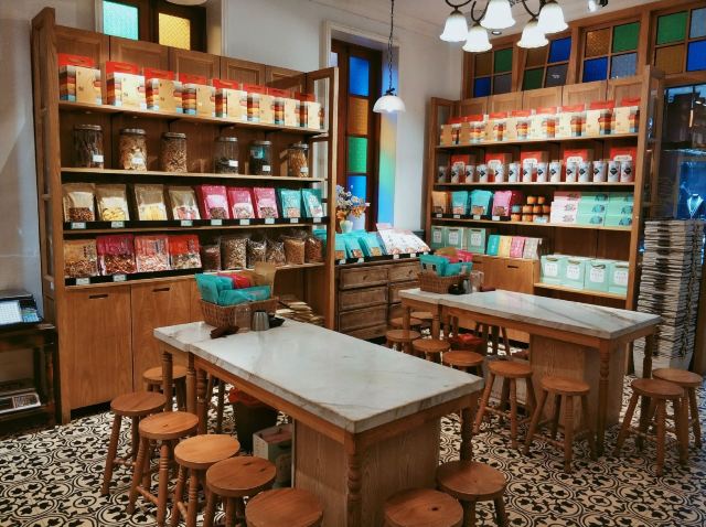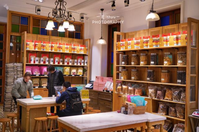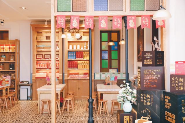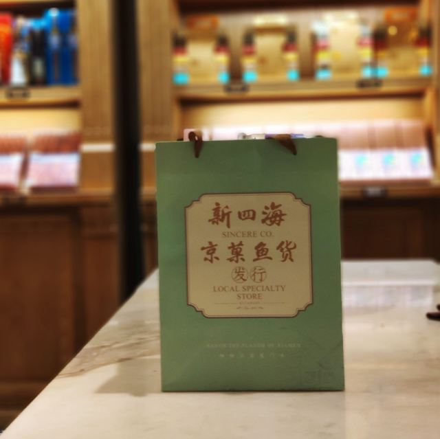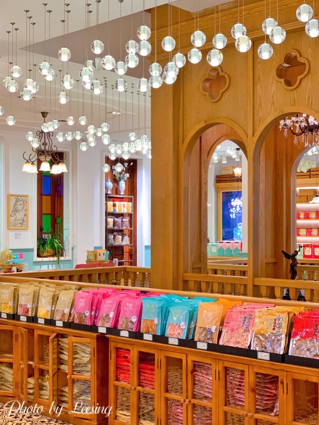 franceteam掰着手指算一下,离春节也就不到10天的光景了。是时候,给自家客厅添办一些年货,增添一下节日氛围了。说到厦门年货,自然还是以闽南本地特色的各色零嘴糕点为主。今天就打卡鼓浪屿老字号特产店——新四海·京菓鱼货发行(李家庄店) 店址位于鼓浪屿漳州路42号,鼓浪屿足球场(马约翰广场)附近,上屿水产边上的斜坡(漳州路)20米不到的地方便是。门面阔气,招牌醒目,挺好找的。 [薄荷]环境: 这大概是我见过的最气派伴手礼店了吧。李家庄建于“公共租界”时期的1920年,距今已有上百年历史。上世纪由爱国华侨李清泉先生买下,改名“李家庄”,期间几经修缮,是鼓浪屿上保存最为完好的老别墅之一。建筑风格为欧式连廊别墅风格,红砖红瓦,典雅大气。3层主楼高大精巧,副楼质朴淡雅。内部装潢独有韵味,复古绿主调,南洋花砖,彩色玻璃木窗,玉兰花吊灯,还有那些堪称古董的实木楼梯、望远镜、雕塑、摆件…时间在此仿佛停止了流动,一切似乎仍停留在那百年前时光之中。空中弥漫着的那股充满故事的怀旧味道,令人着迷不已。 一楼二楼为京菓鱼货等特产伴手礼为主,也有珍珠等珠宝饰品在售。三楼则为各种精品小饰物等旅游纪念品。再往上也是四楼天台,视野开阔,风景独好。日光岩,菽庄花园,鹭江道以及隔壁的林语堂故居尽收眼底。关键是这边还未被游客发现占领,人非常少,算是旅游途中拍照打卡的绝佳地点[嘘][嘘][嘘]。 |鼓浪屿伴手礼限定礼盒^非常丰富的一份综合大礼盒,包含:|鱼骨^|红豆馅饼^|椰子饼^|绿豆馅饼^|海苔夹心脆片^|巴旦木牛轧糖^|蔓越莓牛轧糖^|榴莲流心饼^|芒果干^|凤梨酥^各一,共计10种!几乎涵盖了厦门最具代表性的伴手礼,包装很精美,相当赞! 总评,第一次知道新四海,大概是20年前的事了。那时,跟着长辈们来给外地的亲戚朋友挑选特产。进门后,落座沏茶,试吃闲聊,买多买少,甚至不买都没关系。店员们热情好客的服务态度,街坊邻里般的亲切感,让人印象深刻。这次来李家庄店,体验更加升级,小小的伴手礼里面蕴藏的历史、文化以及品牌的各种底蕴,彼此间相互交融传递,已经超越普通购物定义,是一次非常棒的体验!