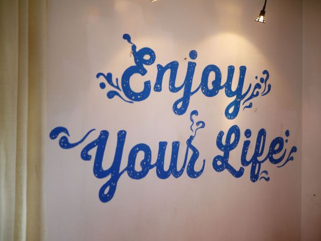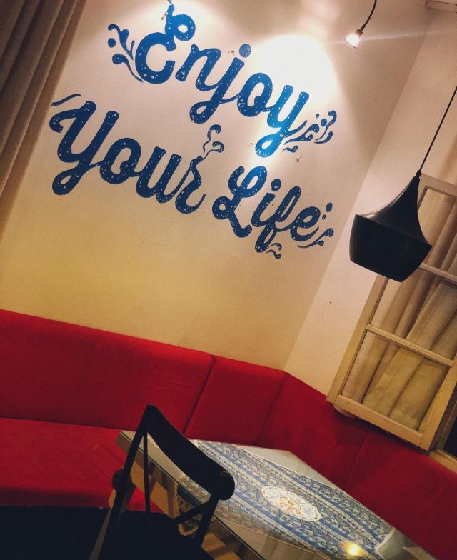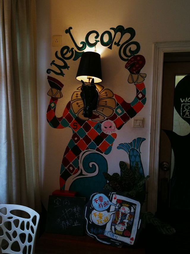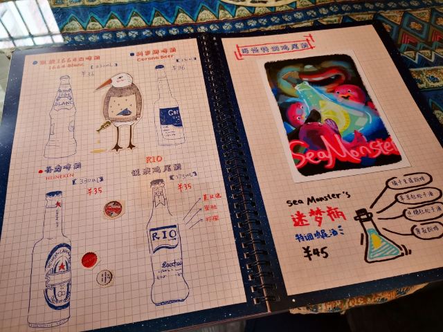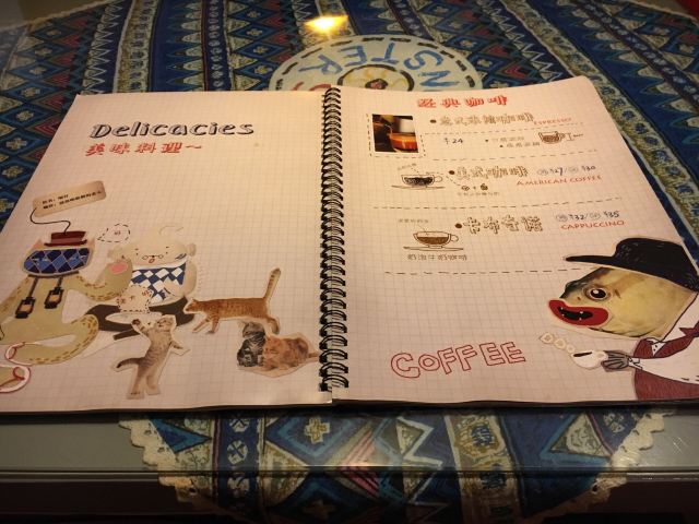 手绘的菜单,手绘的墙体,给人很温馨的感觉