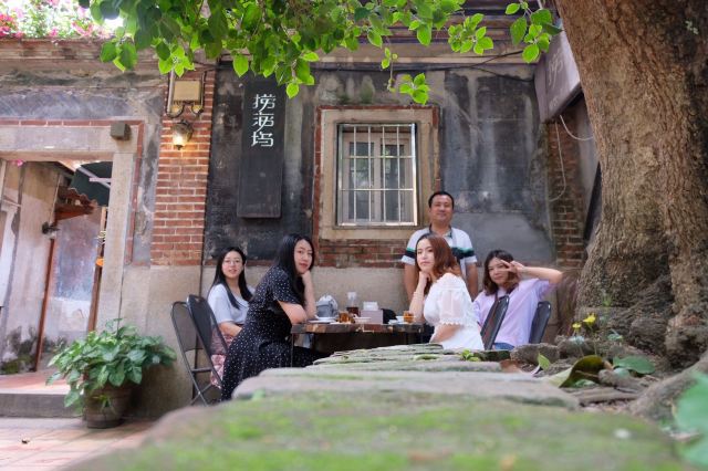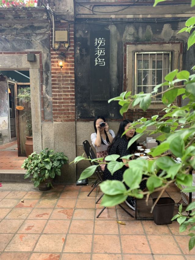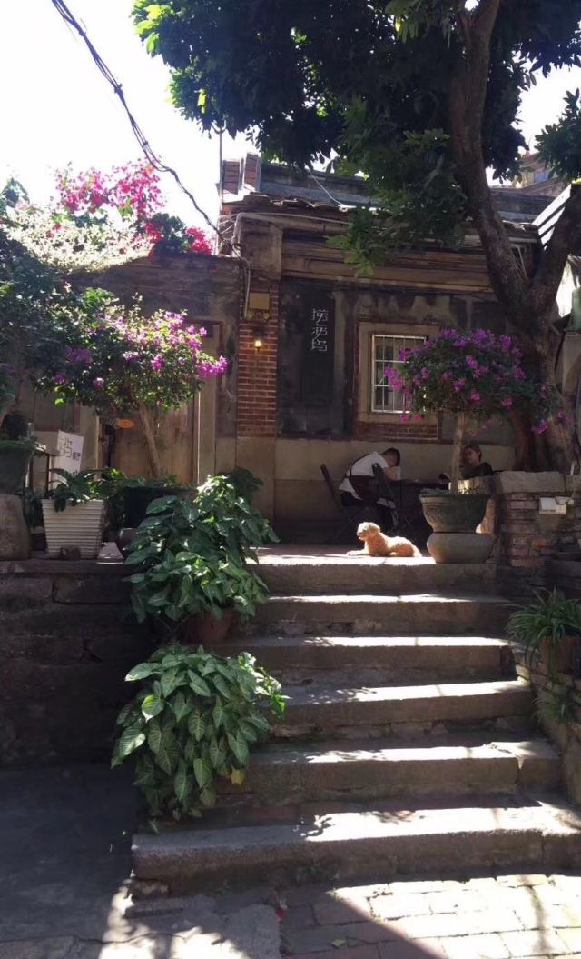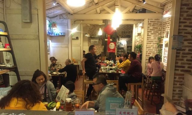 泉州路转角处的一家隐蔽小店,由一个小巷口进去,便可看到一个种满花、树的庭院,以及藏在老宅里的小店。店面虽小但精致优雅,怀旧的桌椅、吧台、书架错落有致的摆放,透过敞开的木质门窗,还可看到窗外盛开的花朵和古老斑驳的砖瓦,这种看似简陋但又温馨的家庭式装修营造出一种安心舒适的归属感。