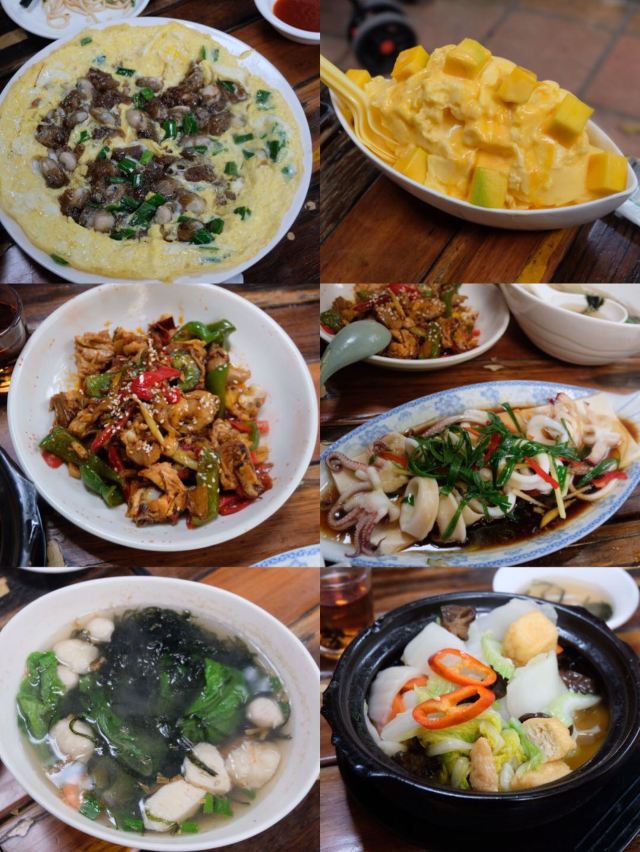 海鲜捞粉,海鲜沙茶面,白灼鱿鱼,捞鲜虾,白灼花蛤,姥姥家红烧猪脚,芒果捞,招牌海蛎煎,鲨鱼煲,猪脚饭,捞鱿鱼,沙茶面底,卤味双拼,芋头牛肉,香芋猪蹄煲,菌菇汤,海蛎煎,卤肉饭,捞彩贝,外婆的红烧蹄髈,桂花红枣奶茶,海鲜捞,沙茶面