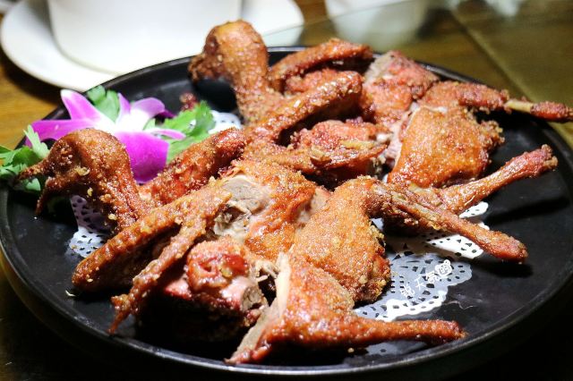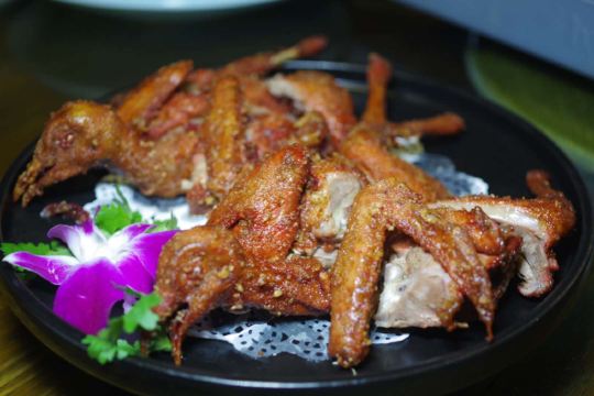 锐天气位于厦门凌香里26号的草根堂,就是这样一间给人温暖家庭感觉的私房菜馆。 深藏于莲花别墅群里,横街窄巷之中的一幢3层小洋楼,门前柔和的灯光,充满绿植的小庭院,不饰浮华的桌椅、包间,还有用来装饰的老物件,低调而不俗气。 水饺烧,初听此名觉得很好奇,端上桌后发现好像是开着口的饺子,却又不是锅贴。一边的老板解释说,是年轻厨师不会包饺子,没把口封好,然后用油煎了,没想到还挺好吃。这自然是玩笑话,不过好吃是真的。 糟香酥皮鸽,经过酒糟腌制的乳鸽,炸得外酥里嫩,带着些许糟香,让对脆皮乳鸽已经审美疲劳的我,胃口再次大开。 破布子冻鱼,将肉质鲜嫩的黄翅鱼,用类似潮汕鱼饭的方式做成冻鱼,鱼肉咸鲜味美,鱼汤与破布子一起凝结的胶质,也特别甘甜回味。