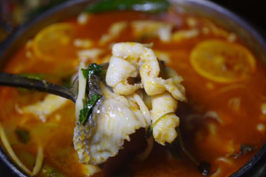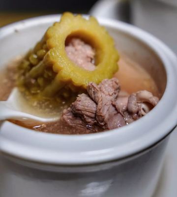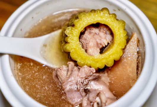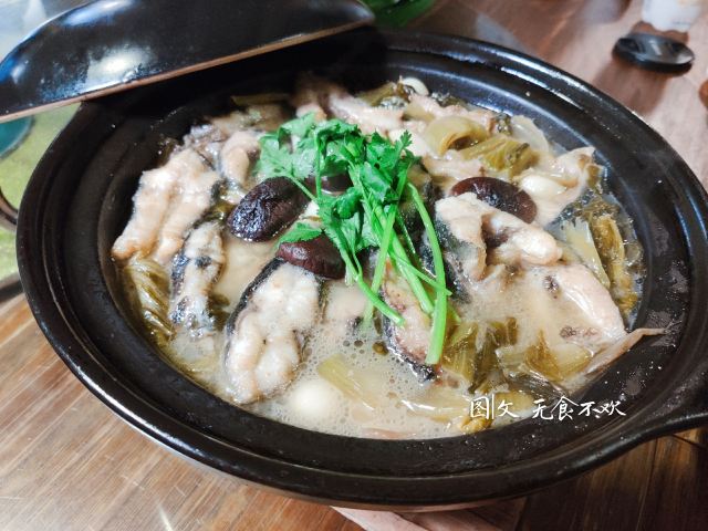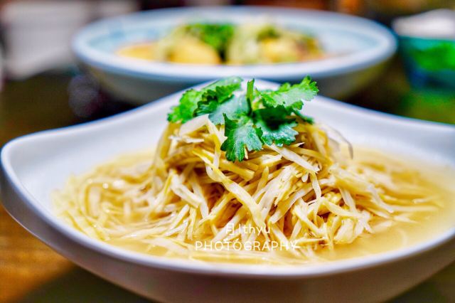 CaoGen Tang这里没有高贵华丽的装修,一栋三层的别墅只有古朴清幽的环境和亲民的价格,置身其中能使人卸下一身疲惫感,沉浸在食物本身的味道中让人感到踏实。 破布子冻鱼 和潮汕地区“打冷”有所不同,这道菜的特别之处在于充满胶质晶莹剔透的鱼冻,还记得儿时的晚餐,一口白粥配一口鱼冻真是绝顶的美味。 葱油鸡 澄黄油亮的鸡皮,除了有韧劲还很有脆感,鸡肉紧实入味还带有淡淡葱油气息,鸡肉油脂低热量少对减肥者友好,非常适合在这个季节食用。 香茅鱼片 天气一热就会觉得食欲不振,迟钝的味蕾需要来点刺激的,泰式香料辛香汇聚一起浓郁的味道让人欲罢不能,一碗下肚顿时觉得味蕾大开,细嫩的鱼肉和丰富的配菜给这道菜增添了不一样的风味。 苦瓜螺片汤 每到夏季妈妈怕我上火就会做各种苦瓜料理,但苦瓜并不是所有人都能接受,那不妨煲成汤试试。猪肝沿、肉羹和鲜螺片鲜甜浓香的口感遮盖了苦瓜的苦味,来一碗解暑去火又滋补。 冰镇苦瓜蘸蜜 切成薄片的苦瓜在灯光下纹理清晰可见,冰镇之后为炎热呢夏日带来一丝清凉之感,蘸上蜜汁后苦中带着丝丝甜蜜,这感觉像极了爱情。