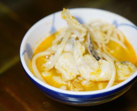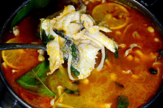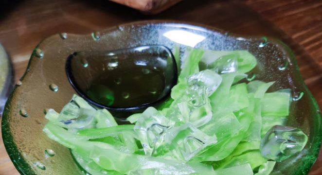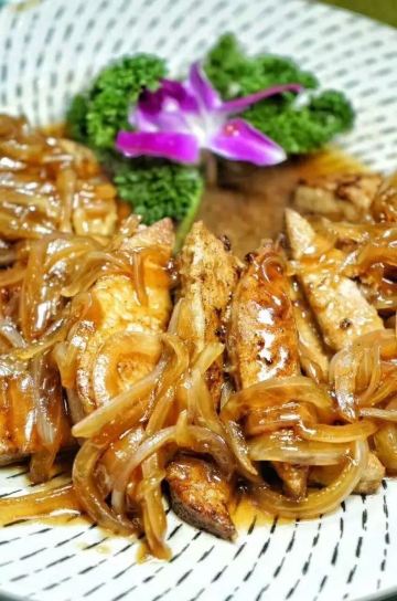 轻轻的一个蚊这里没有高贵华丽的装修,一栋三层的别墅只有古朴清幽的环境和亲民的价格,置身其中能使人卸下一身疲惫感,沉浸在食物本身的味道中让人感到踏实。 破布子冻鱼 和潮汕地区“打冷”有所不同,这道菜的特别之处在于充满胶质晶莹剔透的鱼冻,还记得儿时的晚餐,一口白粥配一口鱼冻真是绝顶的美味。 葱油鸡 澄黄油亮的鸡皮,除了有韧劲还很有脆感,鸡肉紧实入味还带有淡淡葱油气息,鸡肉油脂低热量少对减肥者友好,非常适合在这个季节食用。 香茅鱼片 天气一热就会觉得食欲不振,迟钝的味蕾需要来点刺激的,泰式香料辛香汇聚一起浓郁的味道让人欲罢不能,一碗下肚顿时觉得味蕾大开,细嫩的鱼肉和丰富的配菜给这道菜增添了不一样的风味。 苦瓜螺片汤 每到夏季妈妈怕我上火就会做各种苦瓜料理,但苦瓜并不是所有人都能接受,那不妨煲成汤试试。猪肝沿、肉羹和鲜螺片鲜甜浓香的口感遮盖了苦瓜的苦味,来一碗解暑去火又滋补。 冰镇苦瓜蘸蜜 切成薄片的苦瓜在灯光下纹理清晰可见,冰镇之后为炎热呢夏日带来一丝清凉之感,蘸上蜜汁后苦中带着丝丝甜蜜,这感觉像极了爱情。