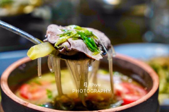 YoYo_8F5A0M6I三五好友相聚,找个安静的地方吃个饭,这家店必然是推荐之一。 小肠汤打成这样的结并不是为了造型,而是口感。打结的小肠,内里是满的汁水。待它放凉之后,一口下去是会爆汁的。 这种吃肉又可以当主食的方式,倒是常见。不过妙就妙在里面的肉。加入了酒糟元素的五花肉,糯烂入味。夹上大葱、黄瓜、芫荽,一个人可以吃一整份。 不得不提的是猪肝,给人惊艳之感。我不知道原来猪肝也可以真正做到入口即化。 鳗鱼要这么厚实的才好吃。它的香气,油脂和细嫩肉质里的汁水以及肉质的细嫩完全展现出来。这也同样是酒糟风味的。外表有一些酥脆感。 用文蛤汤煮的鱼丸。咬一口你就知道,完全是鱼肉的感觉。非常真实。一直觉得鱼丸和入味的肉馅儿特别搭,不怕你们笑话,包子一个人可以吃四五个。 加了花椒和姜丝炝的小白鲳。鲳鱼因为皮的油脂丰富,干煎和炝都非常适合。 昆布时蔬,这样一锅蔬菜想必谁都不会拒绝。汤头融合了海鲜的鲜美,有一种很夏天的感觉。