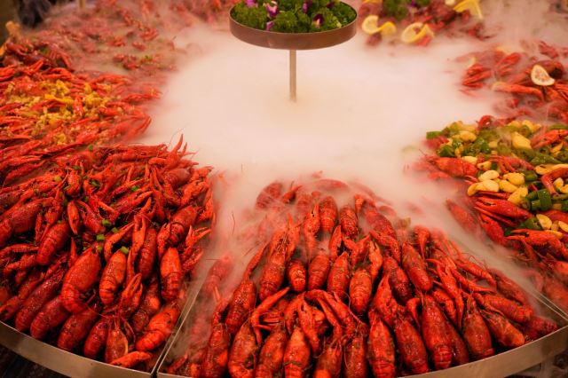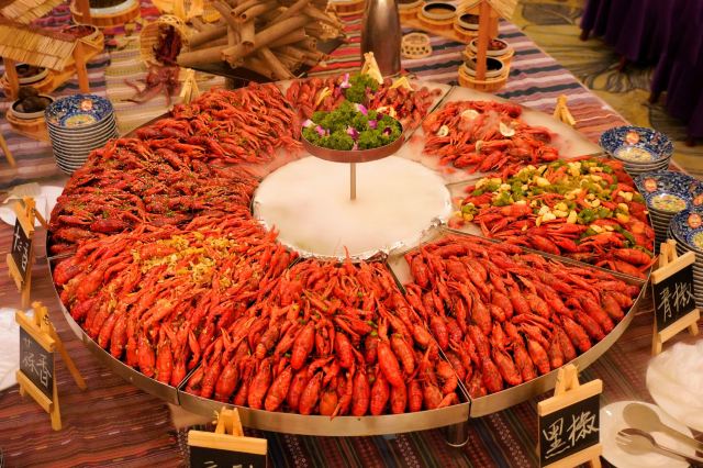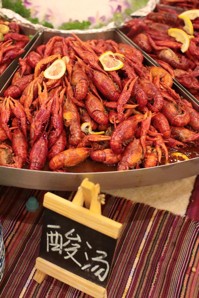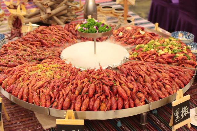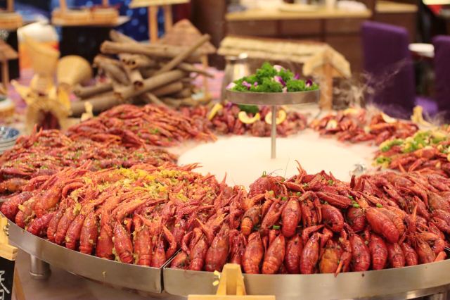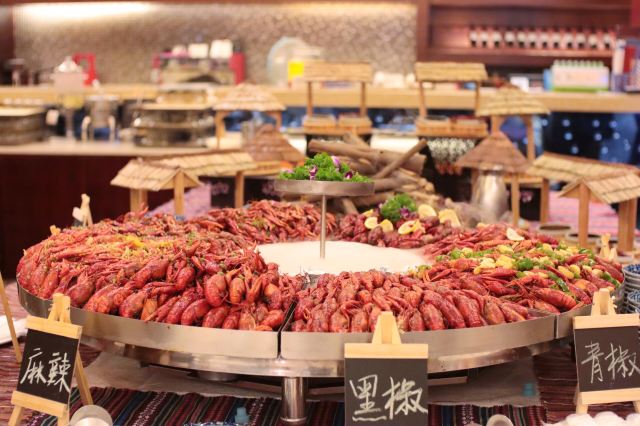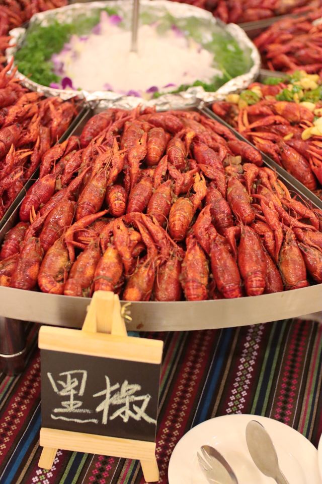 汪胖胖小姐姐8️⃣种口味龙虾汇聚成一大盘,让你一次吃到爽❗️ 牡丹国际大酒店.自助餐厅 莲前西路 最近是小龙虾的季节,而牡丹国际大酒店的自助餐厅也推出了小龙虾美食节。一进门,先不看别的,单单是一大盆8️⃣种口味的小龙虾就够吸引人眼球了。 酸汤、熟醉、黑椒、青椒、麻辣、蒜香、十三香、黄焖,先不管哪个口味你最爱[爱心],每个口味先打一盆放桌上再说。 厨师长说,最受欢迎的还是蒜香。而在8️⃣种口味中,我最喜欢十三香,带一点点的微辣和十三香的香味会久久停留在舌尖,让你一只一只的停不下来。 熟醉口味的小龙虾是惊喜中的意外,用白酒灌醉的小龙虾,吃下去是浓浓的白酒味,稍不留神多吃几只就醉了呢。 每只小龙虾的肉质饱满,虾头还有黄黄的膏,甚至连小小的钳子也是一块完整的肉呢。 小龙虾吃爽后,还有很多自助菜品,铁板区的牛排、鸡排、羊排都是马上煎的,肉食者必打卡。 最后再来甜品区,榴莲冰淇淋可是隐藏菜单呢,单单是挖出来放桌上就能闻到一股榴莲香。