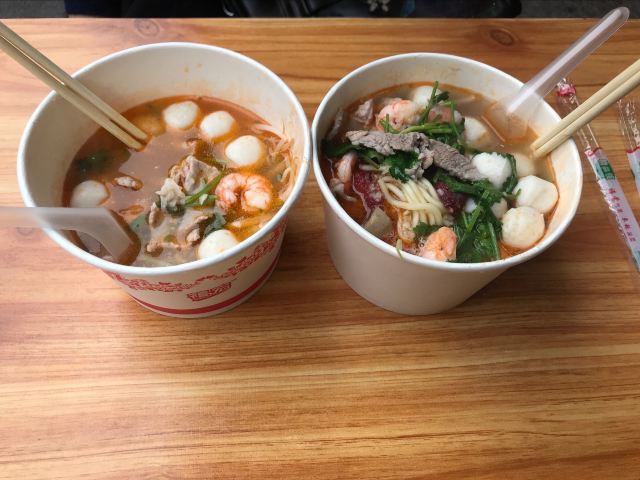 Ming Yue Xia Mian(xiaheludian)偶尔吃一次还是不错的,汤里虽有些小海鲜却也不会腥气 结实地小鱼丸真是无比爱的存在啊,超有弹性又有鱼肉香 加上点鸭肠叉烧肉片之类的,配上豆芽,鲜香脆爽就全都出来了 店里人不多,有空还能围观师傅制作的全过程,大冬天早上来一碗真棒