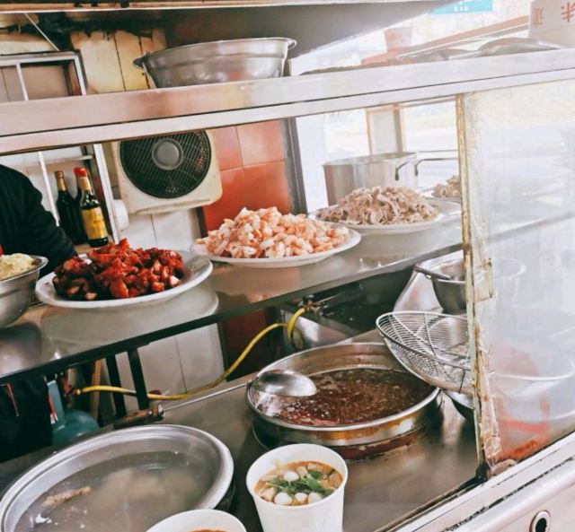 十一呀。—位置📍—— 厦合路180号,8️⃣市海鲜🦞菜场附近,临街门面都有门牌号,很好找。 ——环境&服务💁—— 道路临街的门面啦,里面和外面都有座位💺,不过加起来好像10个左右吧。面和汤🥣上的很快,老板也会帮着摆桌子在外面。老板有一头标志性的卷发👨🦱哈哈哈哈。 「招牌虾面」厦门海鲜🦞是一大特色,面汤是虾头熬的,新鲜的虾🦐,所以味道和名气也不是吹出来的。面里还配有瘦肉,小肠,叉烧,鱼丸,都不错。 「虾仁瘦肉鱼丸汤」就是没有面面的汤,里面是豆芽打底,瘦肉,小肠,叉烧,鱼丸,料超级足,很鲜很棒! 老板很潮很复古,哈哈哈哈。