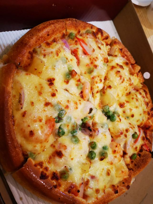 尊宝比萨,中山路店,本土的披萨店,虽然口味稍微逊色于大牌知名披萨,但是还是得到我们家人的认可。特别是品尝他家的披萨,都喜欢点上双倍芝士,口感更香浓。特制鸡翼,美味,炸鸡米花,炸蝴蝶虾,芒果桃子味饮品,都是我们的必点,就是服务员的态度,稍微有些冰冷,感觉不太舒服