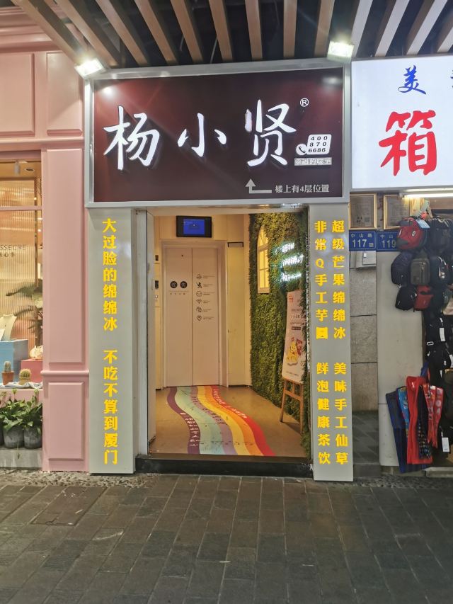Yang Xiao Xian ( Zhongshan Road Dian)放假之际,总想逃离一个呆腻的地方,前往别人呆腻的地方逛逛下. 人均:20元左右 探索美食,追寻美味,追寻新店 杨小贤甜品铺 <地址>:厦门中山路117号, <环境>:电梯上楼,在电梯口装饰绿,令人赏心悦目感觉,上楼热情的服务接待,二楼点单,三楼用餐,自主取餐,点单区设有椅子让等待人坐,简单简约装饰,华丽不失典雅. <菜品>: 红豆烧仙草----烧仙草另番品尝口味,红豆汤为底,鲜甜爽口,加入各种美食,一碗可口烧仙草即成,花生,芋圆,仙草,红豆,芋头等,芋圆越咀嚼越软糯Q弹,花生口感极脆,仙草软软口感软绵爽口,芋头松软度待提升,闲逛热时解暑之佳品,解腻之甜品,解口之美食.