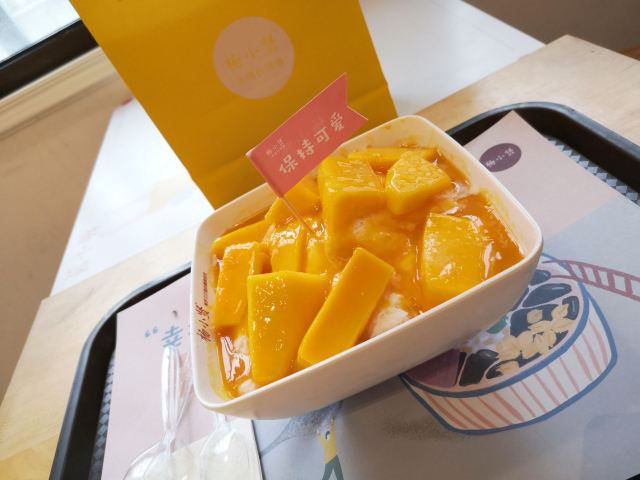 细腻到入口即化的绵绵冰已经是大家公认的最夯招牌,其中的超级芒果绵绵冰就是一整座芒果冰山的既视感。光是盘子就有30cm,芒果也用了两大个,足足有3-5人的份量,芒果和绵绵冰的匹配程度几乎达到 99.9%,谁也离不开谁,一口一口往嘴里塞,实在是过瘾。