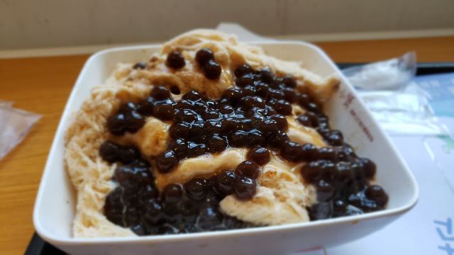 睡恣@M丶绵绵冰口感很好,芋园Q弹,冰淇淋奶味纯正,超好吃的一家甜品店。还有榴莲红丝绒蛋糕也很好吃,可惜忘了拍照了。