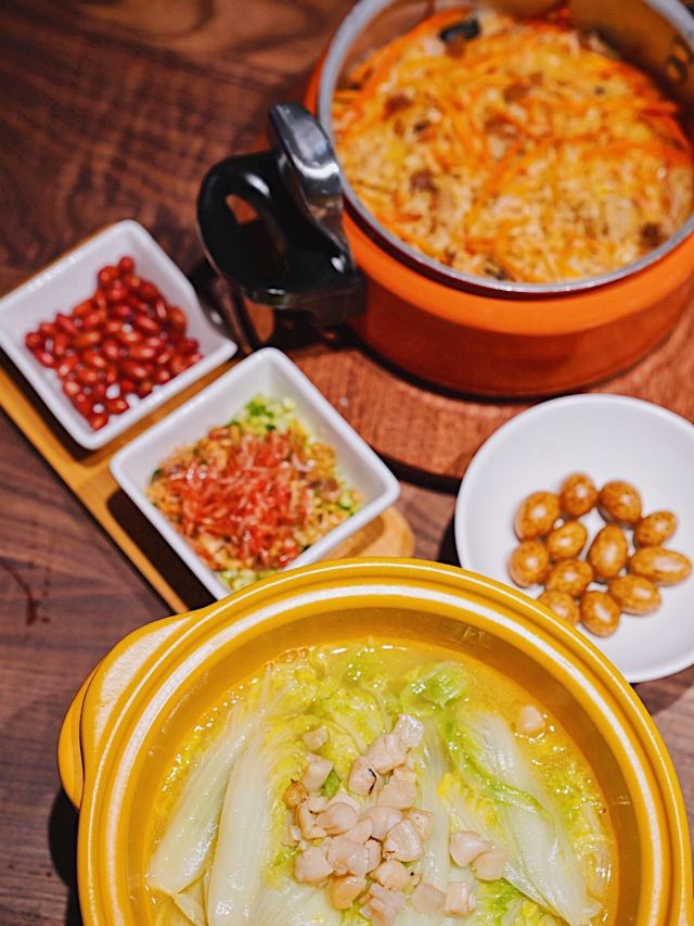 加油干饭呀正大广场新开了一家闽南菜馆,返璞归真的临家闽南宴,地地道道的闽南味,养生girl必打卡✔️ 必须夸一夸他们的自制开胃小食,不管是椰汁糕还是鱼皮花生都深得我心,外脆内酥的🥜鱼皮花生🥜油润不腻鲜香四溢,让你一口回到小时候,没想到临走时还赠送一份作为伴手礼。 慢工出细活,🍲临家慢工佛跳墙🍲真的有一尊佛‼️揭开碗盖犹如打开了聚宝盆一般,鲍鱼花胶海参鸽子蛋尽显眼前,喝上一口简直十全大补的节奏! 🥘舌尖红萝卜焖饭🥘一口就爱上了有木有!简单食材打造不一样的滋味,焖至酥烂的红萝卜搭配五花肉,现场搅拌均匀香气扑鼻,粒粒分明的米饭软糯适口鲜香四溢,还可依据个人喜好添加香菜和花生米。 🌈百香果汁拌果蔬🌈五彩缤纷的时蔬组合,满满维C唤醒一整天的活力,里面有苹果🍎橙子🍊香蕉🍌桃子🍑菠萝🍍奇异果🥝黄瓜🥒莲雾和冰草,百香果汁搅拌均匀,酸甜交织清新开胃。