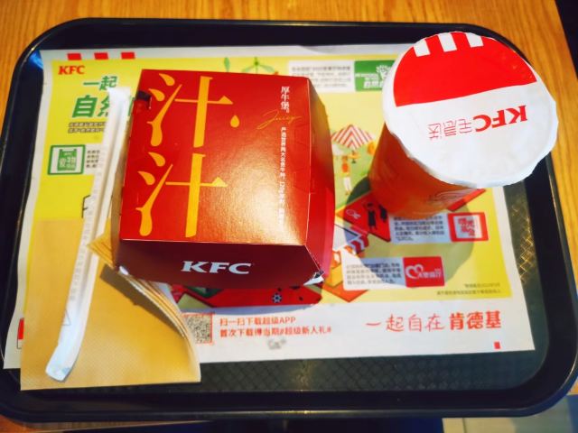 🏠肯德基(滨北店)位于湖滨北路海湾新城一期一号楼一层,店不大,不过一如既往地卫生条件干净整洁,明亮干净,这样的用餐环境让我吃的放心。 🍔瀑布芝士2.0汁汁厚牛堡安格斯:一般名称越长的菜品都是精品的招牌,👀这款汉堡份量十足,用料超级足,内层铺的满满当当,轻盈谈嫩的舒芙蕾外皮、浓浓的黄金瀑布芝士酱,又厚又多汁的安格斯牛肉,不仅五颜六色的,😍一口下去奶香味肉香味十足,醇厚的滋味真是味蕾享受,没让我失望。 🥤爆汁三柠茶:酸酸甜甜的口感,清爽解渴解腻,和汉堡是绝配。 💰人均大约30元,新款汉堡真不错。