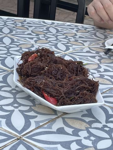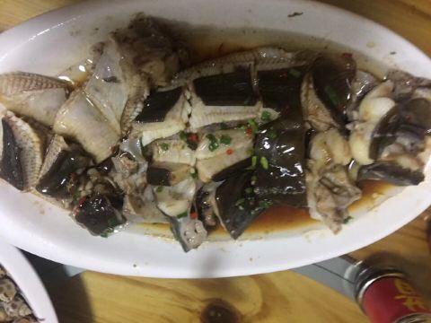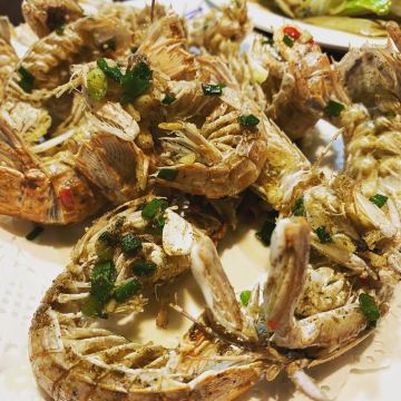 「椒盐虾蛄」这面的虾蛄很新鲜,个头不是很大,味道不错,这面椒盐的做法也不是炸得特别狠,而是表面微脆,保证里面肉质很嫩,味道也比较清淡「煎沙母蟹」厦门做蟹味道非常不错,在这边一定要吃煎蟹,这面煎蟹会把蟹一分为二,以单面煎为主,而且要配有老姜丝,为了去寒去腥,但姜丝会炸得很脆,非常好吃,蟹也保证了它的鲜美「清蒸东星斑」这面东星斑非常便宜,189一斤,这次点了一鱼两吃,鱼肉清蒸,味道鲜美,火候也比较合适「东星斑鱼骨汤」很清淡,很鲜美。一鱼两吃的另外的一种「炒老蛏」味道不错,但没竹蛏好吃,很新鲜,也很干净 [薄荷]环境: 在一个老宅里,环境也很有特点 [服务铃]服务: 点菜很热情