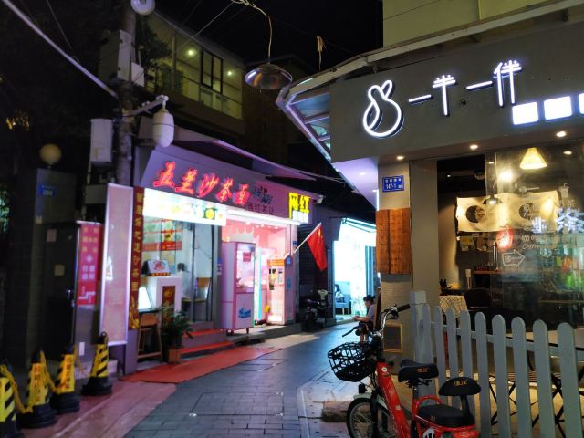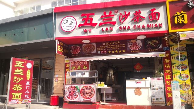 旅游度假厦门美食之旅第六天[困]! 刚一出门就被热回去了!太热太晒了!一大早刚刚8点多!这是什么节奏!太晒了!想着为了吃一口美食!忍了!快步走向曾厝垵大牌楼左手边的五兰沙茶面!这家是曾厝垵里最火爆的最热销的一家店! [薄荷]环境: 由于来的比较早,店内人很少!空调凉度很足!内部空间也还算可以,左右两侧都能落座!环境干净整洁! [服务铃]服务: 老板娘很热情,会主动问好不好吃,不够可以添面,汤咸不咸可以加! |经典沙茶面^选的经典沙茶面,28元一份!里面有4只大虾,4个蛤蜊,一个大夹心鱼丸,一块豆干!真的是海鲜比面多!食材丰富而且新鲜!虾肉很Q弹紧实,蛤蜊肉很鲜,大夹心鱼丸超大一个!豆干很入味!沙茶汤花生酱味非常浓郁!偏咸甜,面条很劲道挺好吃的!味道比较不错!怪不得人气榜第一呢! 总结:推荐一下!这家是曾厝垵里人气最火的一家沙茶面!味道自然也是很好次的!非常好次!完美的解决了我的一顿早餐!很幸福[坏笑]!