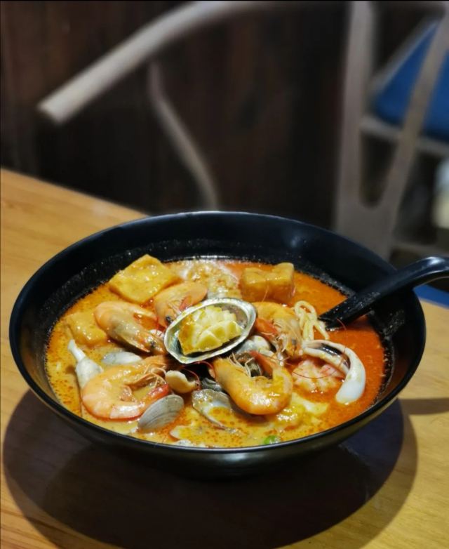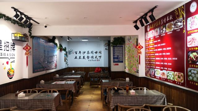 肥猫天厦门美食之旅第六天[困]! 刚一出门就被热回去了!太热太晒了!一大早刚刚8点多!这是什么节奏!太晒了!想着为了吃一口美食!忍了!快步走向曾厝垵大牌楼左手边的五兰沙茶面!这家是曾厝垵里最火爆的最热销的一家店! [薄荷]环境: 由于来的比较早,店内人很少!空调凉度很足!内部空间也还算可以,左右两侧都能落座!环境干净整洁! [服务铃]服务: 老板娘很热情,会主动问好不好吃,不够可以添面,汤咸不咸可以加! |经典沙茶面^选的经典沙茶面,28元一份!里面有4只大虾,4个蛤蜊,一个大夹心鱼丸,一块豆干!真的是海鲜比面多!食材丰富而且新鲜!虾肉很Q弹紧实,蛤蜊肉很鲜,大夹心鱼丸超大一个!豆干很入味!沙茶汤花生酱味非常浓郁!偏咸甜,面条很劲道挺好吃的!味道比较不错!怪不得人气榜第一呢! 总结:推荐一下!这家是曾厝垵里人气最火的一家沙茶面!味道自然也是很好次的!非常好次!完美的解决了我的一顿早餐!很幸福[坏笑]!