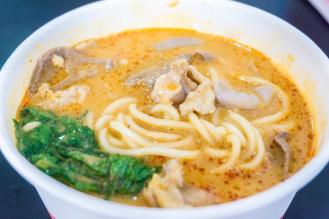 未接来电2019五兰沙茶面 在曾厝垵的牌坊进去后走一百多米向左就可以看见五兰沙茶面的招牌,店面环境普普通通,不是很大。 店里老板服务员都会推荐沙茶面。第一次尝试沙茶面,东北人表示还能接受。 我们点了一份招牌沙茶面和一份普通沙茶面,一份28元一份18元。 我吃的是招牌沙茶面,里面加了海鲜和豆泡,海鲜有虾,有鱿鱼,海蛎还有鱼丸。海鲜感觉一般般,就没有很鲜甜的样子。 汤就是特色,很浓稠,有一种甜甜稠稠的口感。还有加辣椒,整体甜辣甜辣的感觉,不能喝太多,应该会腻。面条很劲道,特别的顶饿。 一起来的同事是在厦门读大学,她说第一次吃沙茶面还不太习惯,多吃几次会爱上它的,而且表示这两天要再吃几次。
