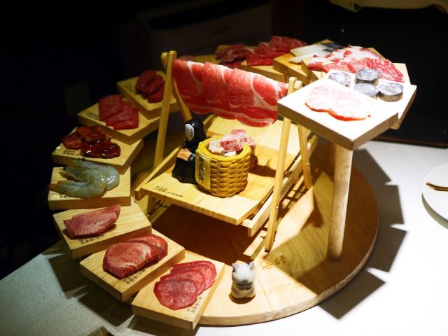 四海晴步步高升拼盘,土豆泥,牛立方,酱和牛,墨鱼肠,鳗鱼饭,五花肉,牛五花,四海晴撒撒米,烧仙草