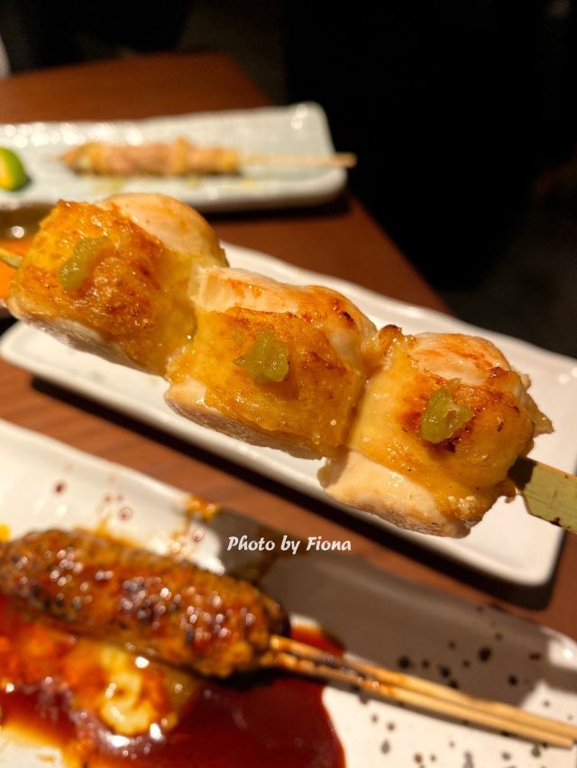 Miss丶Fiona鳥嘯.燒鳥酒場位於文屏路嘉禾良庫6號倉6101號,魔都很火的一家燒鳥店,最近才來到廈門。怕要等位,特地提前一天訂了位置。 ⚠️菜單上有一隻雞的燒鳥部位地圖,分成普通部位和稀少部位。熟度分為入門級、進階級和大師級,大師級熟度為5-7成熟。每天限量供應的特殊部位是它家最大的亮點,雞冠、提燈、白肝、雞腳筋、雞腿尖肉等等在普通燒鳥店是不太能見到的呢! 點的烤串都很好吃,幾乎不會踩雷。雞提燈,很神奇的部位,第一次吃,咬下去會在口腔里爆漿,像溏心蛋。烤雞肉丸子,配了生雞蛋蘸食,醬汁鮮甜淋上蛋液更加滑嫩。烤雞胸肉,這可能是全世界最嫩的雞胸肉了,以前吃的雞胸肉都有點柴。京蔥雞腿肉,平時很怕吃蔥,但是烤京蔥雞腿肉就會吃。芝士豆腐,細膩的豆腐上面有層白芝麻特別香,頂部還有柚子醬,口感更豐富,在菜單上的小菜第一道,我覺得它更偏向於是甜品。