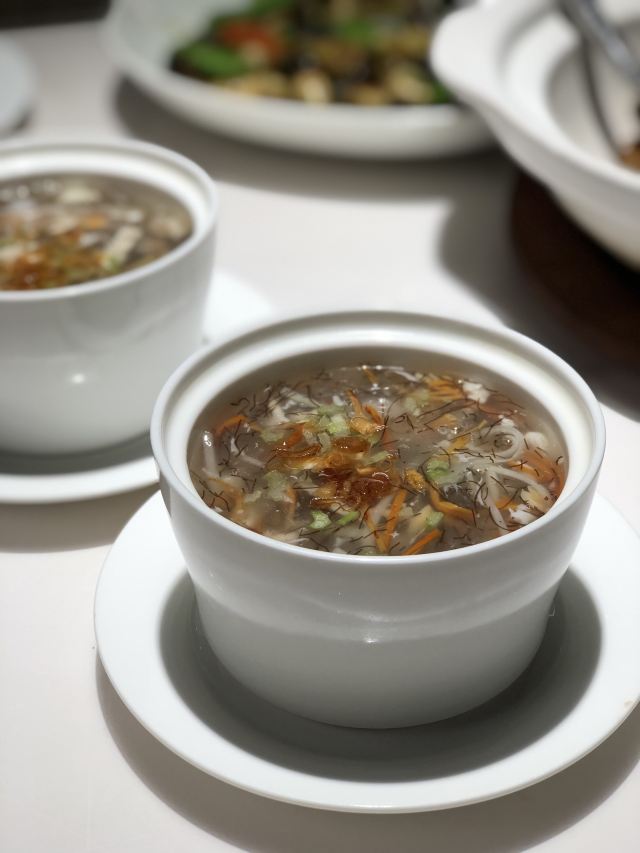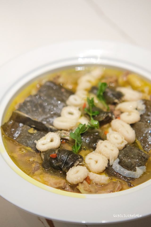 源欣黎梦用餐过后,这成为了我最爱的餐厅之一。 [服务铃]服务: 真的很贴心的服务了,从服务员的气质涵养来看,这家餐厅真的很合格。 👶🏻提供的宝宝椅也是秒杀一众餐厅,有舒服的垫子,宝宝难得可以坐很久,让麻麻解放双手[嘿哈] [薄荷]环境: 还蛮不错的环境,看着就很舒服,有好多包间,完全很适合商务或者聚餐或者家庭用餐🍴。 大堂还有个小小的水池,里面有小金鱼,还不时的喷出雾气,宝宝很爱看[鬼脸]。 🥢🎣🐡🐠🐟🦞菜品: |私厦焖鲍姜母鸭^这道菜非常非常推荐,这姜母鸭实在太入味了,完全是精华版姜母鸭,口口入香哈。 |蚝皇汁焗冬瓜^这道菜简单又不失美味,而且很健康,宝宝也能食用。 |蛏干焖手撕游江豆腐^汤汁儿用来拌饭吃很赞哦,豆腐已经吸收了各种食材的味道,口感就还不错。 |金沙咸蛋黄焗羊肚菌^平常的羊肚菌都用来炖汤,这样的小菜做法还蛮特别的,很清新的感觉。