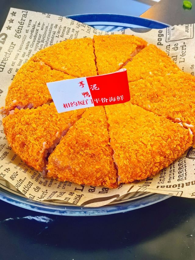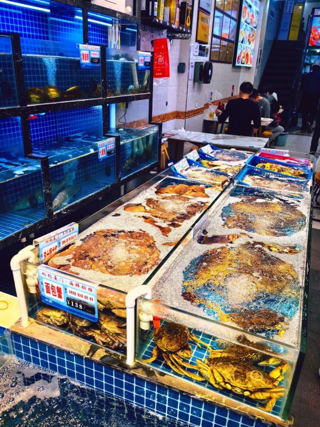 🏠相约厦门平价海鲜城位于鹭江街道横竹路4号,距离轮渡不远,餐厅门口有一个醒目的海鲜池,摆放了各种海鲜一楼二楼都可以用餐,不过卫生条件较为一般,二楼坐起来有点摇晃,挑高不高有点压抑。 🦞【蒜香蒸生猛小青龙】口感丰富,浓浓的蒜香味,肉质也很紧实。 🐟【古法蒸海鱼】鲈鱼鲜美嫩滑、不腥不柴。 🦆【厦门香酥芝士芋泥鸭】最近很火的一道菜,外皮酥脆,芋泥包裹着鸭肉,甜中带咸, 💰人均大约100元,米饭一碗3元有点小贵。