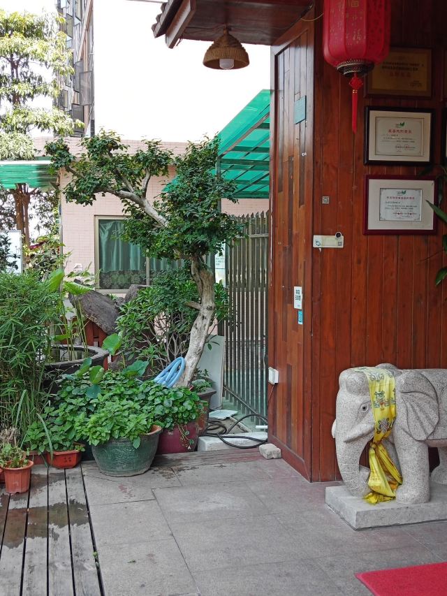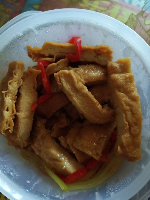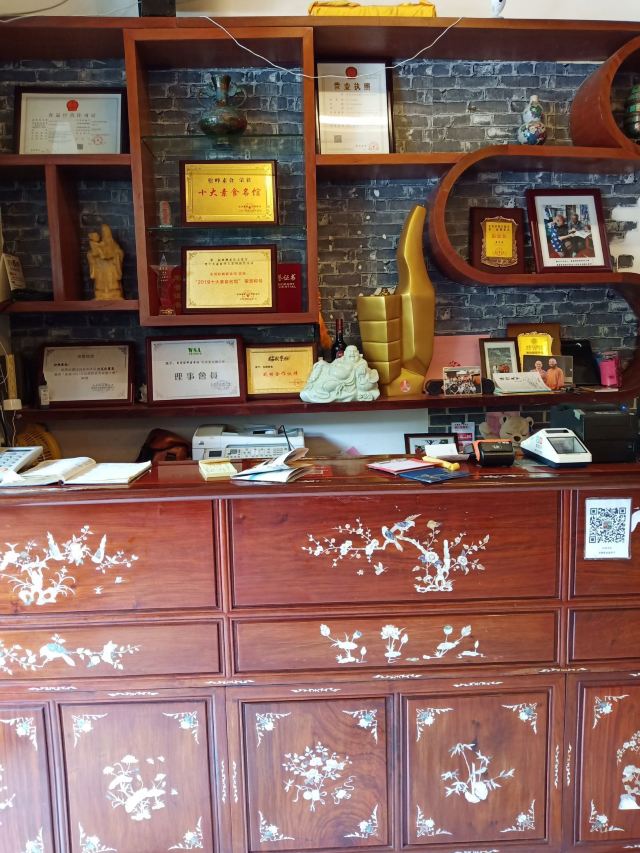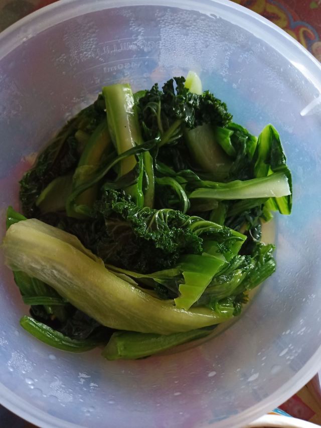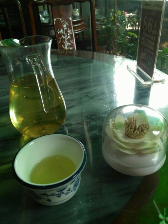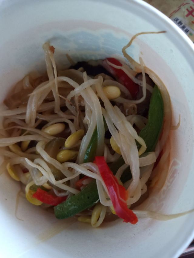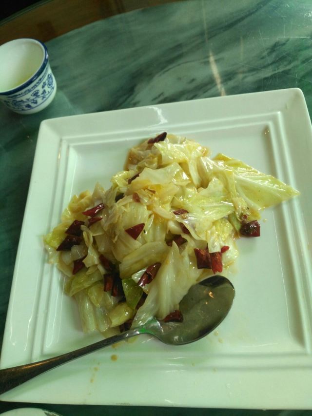 松峰素食馆(三) 菜单上的"二十年经典小菜",每份3元,图一至图三分别是豆干、豆芽和什菜,最后来个合影哈(见图四)。卖相挺好,小碟子也挺雅致哒,是吧?味道也不错,挺下饭,什菜偏甜一点。
