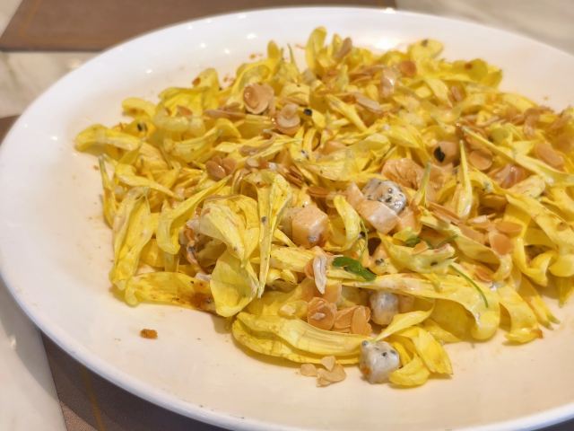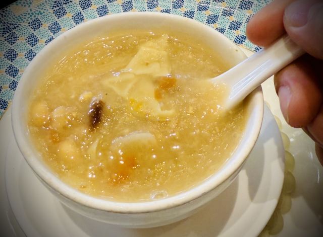 DongGuan Lao Restaurant温故东莞美食行之东莞老饭店 广东烹饪协会“百县千碗”基层走访在常务副会长和特邀副会长的带领下,来到了创始于1979年的“东莞老饭店”。 这家被东莞当地美食达人誉为“东莞餐饮三大体系”之一的民营企业老字号已经走过了四十多年的风雨,既积累了自己的味觉谱系,也增长了应对市场变化的能力。 餐饮女强人钟总的东莞老饭店堪称巨无霸,经营面积数千方甚至拥有空中花园,如此庞大的经营体量,如何在一片内卷浪潮中找到商机呢? 钟总的答案是:创造新的消费需求。 在传统的早茶、午市、下午茶、晚市和宵夜之外,“东莞老饭店”设计了一个新的消费场景,名曰:晚茶。 晚茶其实就是把年轻人当做时尚消费的宵夜和老年人喜欢夜晚锻炼的生活习惯以及一天之中难得的家人夜晚团聚亲子时光做了一个糅合处理,既能让年轻人可以点几个烫嘴小炒继续小酌几杯,又能涵盖家庭全成员,来一次老少咸宜的夜间茶市,冲壶茶吃个包,尽叙天伦之乐。 不得不说,这是一种经营智慧,当然这背后是有一个成规模成体系的厨房供应系统在进行全天候的火力支援。 虽然是老字号,但餐桌上的新花样还是让交流走访的各个会长单位们开了眼界——大叶菊的沙律成为了粤菜的新凉菜;用云南野橘蒸的和顺鱼也颇合“老莞”的口味;即便是司空见惯的“硬菜”长脚蟹,也可以发扬粤菜时不厌精的态度做成了“虾蟹合体”的现场“汆汤丸子”;就连一桌菜中用来“衬托红花”的青菜,也是新晋网红——粗大厚实的水果通菜。 当然,老字号必然会有老味道,“东莞老饭店”的熟客都会必点一道其貌不扬的“茅根粥”。 广东人喝粥讲究颇多,既有潮汕的“有米粥”,又有顺德的“毋米粥”,一锅粥底可以煲尽山珍海味,其价格当年在京城吓坏了胡同里的大爷。 但“东莞老饭店”的这道“茅根粥”却与众不同,与煲好粥底再加料的其它流派不同,这是一款“粥版”的清补凉,把竹蔗、马蹄、茅根等清补凉配方和大米一起经过长时间熬煮,直到成为糊状。 据说这“茅根粥”也称得上是“义粥”,百余年前许多外江苦力运货到东莞,不适应当地的湿热气候纷纷病倒,于是好心的粥铺老板就把解暑的清补凉和稀粥一块熬煮了赠送给劳工们食用,既能果腹又能解暑,还意外发现味道颇佳,于是流传开来。 茅根粥的口感香滑,味道确实不错,炎炎夏日,堪称医食同源的药膳,既见证了餐饮人的慈悲,也激发了餐饮人的智慧。
