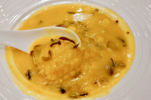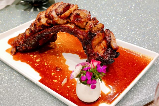 雪岭雄峰,玻璃乳鸽,麻虾汤竹筒面,樱桃鹅肝,金牌片皮鸭,陈皮茅根粥,太钟虾饺皇,炭烧拱桥骨,鸡油花雕蒸红蟹,太钟蛋挞皇,煲仔饭