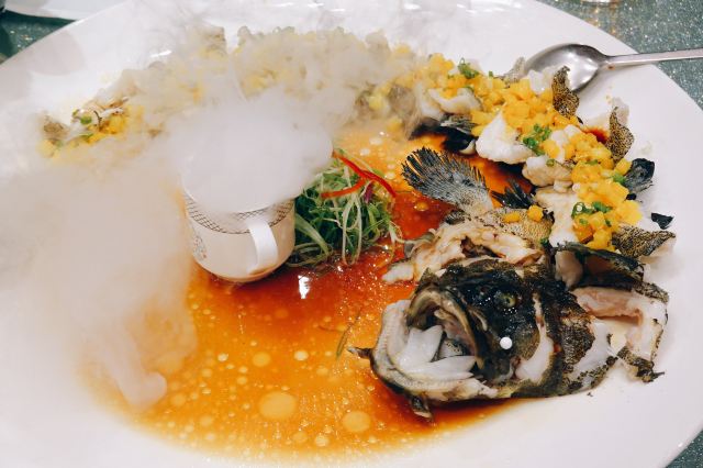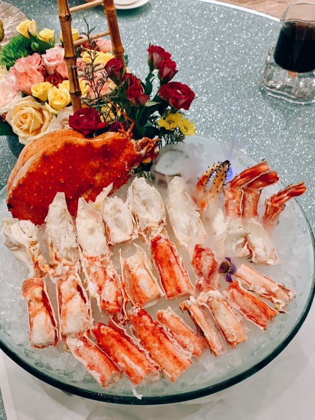 TAICHUNG EAST OCEAN太鍾東海應該是東莞市區當之無愧的粤菜天花板了。 和東海海都、海都六福、老飯店等旗下餐飲店相比,無論是用餐環境、服務體驗、菜式出品都是獨佔鰲頭。 太鐘東海房間只供正餐,不能飲茶。 房間裝修富麗堂皇,絕對是商務宴請或親友相聚的上佳選擇。店員服務貼心周到,總是在你需要的時候出現,又悄悄消失在你交談時,有更好的餐間私人空間。 「阿拉斯加蟹」阿拉斯加蟹两食,冰鎮蟹爪,擺盤精緻,師傅拆肉手藝了得。肉質雪白緊致,可惜稍嫌蟹肉粗糙,是烹煮的時候有點過熟了。但並不影響鮮甜味美。 「鸡油花雕蒸阿拉斯加蟹」算是招牌菜式頭牌了。蟹鉗飽滿多肉,肉質嫩滑,需配以清蒸陳村粉蘸著吃,完美的消化掉香氣濃郁的雞油特調醬汁。 「金牌片皮鸭」店員在客人面前親自現場切片,包好,佐以魚籽醬,脆皮色澤金黃,和鴨肉完全分離,一口咬下去,香氣十足,油而不膩。點這道菜自帶滿滿的儀式感。 「家猪拱桥骨」肉質鮮嫩多汁,厚實而不柴,調汁恰到好處,而且造型漂亮,適合人多聚餐,吃多了會有點膩。 「青龙虾仔焗芝士伊面」龍蝦肉質爽脆緊緻,味道鮮美,以最常用的芝士伊麵焗,伊麵很好的吸收了鮮汁,两全其美。 「盘龙黄椒酱蒸老虎斑」擺盤是十分搶眼有氣勢。海魚緊緻厚實的肉質,在精準的蒸煮時間把控下更是嫩滑可口,鮮味十足。加上味帶微辣的黃椒醬,有效辟除腥味,更有助提鮮。 其餘菜式都是精緻又美味,除了貴,沒什麼毛病。10%服務費也是相對合理。