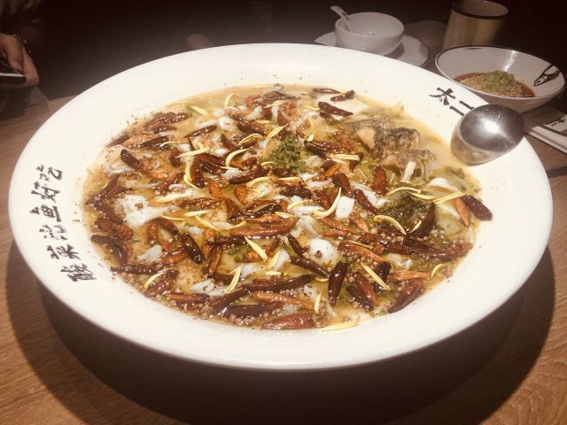 晦气归晦气,鱼还是要吃的,128元双人酸菜鱼,再加上八块钱的金针菇,酸菜一如既往出色,用合适的温度加上标准的做法浓缩而来,确保每一家太二的酸菜鱼都同样出色,鱼片滑而不腻,汤头鲜味足。