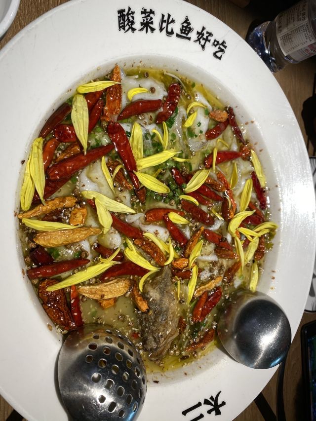 旅游度假晦气归晦气,鱼还是要吃的,128元双人酸菜鱼,再加上八块钱的金针菇,酸菜一如既往出色,用合适的温度加上标准的做法浓缩而来,确保每一家太二的酸菜鱼都同样出色,鱼片滑而不腻,汤头鲜味足。