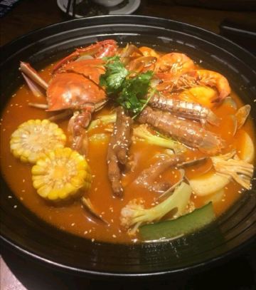 海鲜煲里面有螃蟹虾白贝玉米年糕之类的,特别好吃,汤是有些酸辣的,海鲜都是比较新鲜,里面的配菜也好吃,螺丝就一般般了,很辣不入味,份量少,水煮鱼不够嫩滑,配菜和鱼都没什么味道,没什么特色,好看不好吃,卤水鸡爪还不错。酸梅汤很赞