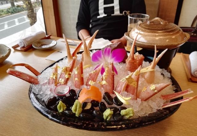 Shinkani Kaiseki Kanifusen Yokohama Yamashita Park位于神奈川县横滨市11 Yamashitacho, Naka-ku,专门吃螃蟹的地方,非常正宗。吃了螃蟹刺身,烧烤蟹腿,用蟹壳做容器的焗蟹肉,最惊艳的就是火锅了。先要煮白菜,把菜煮甜,然后涮蟹腿肉,很好吃。
