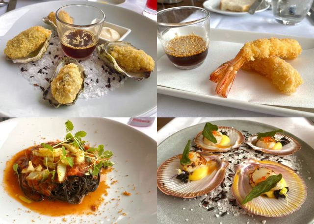 香煎澳洲肺鱼,黑蒜烤生蚝,焦糖无花果,tuna,牡蛎,三文鱼