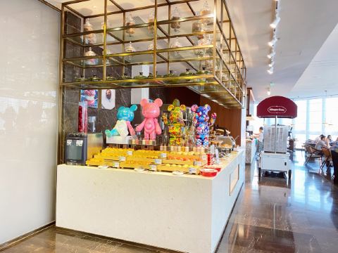 纽约芝士蛋糕,黑蒜烤生蚝,小火锅,红丝绒蛋糕,椒盐基围虾,海鲜,黑椒雪花牛柳,葡萄酒,哈根达斯冰淇淋,铂尔曼甜品