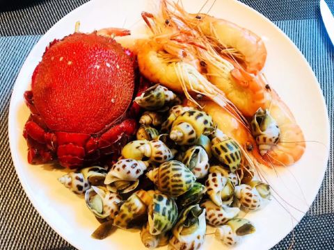 蛋糕点心,三文鱼刺身,龙虾,烤生蚝,甜品布丁,雪糕,榴莲蛋糕,蒜茸生蚝,椰子炖汤,蟹腿,炭烧生蚝,三文鱼扒,冻海鲜,椰子炖鸡