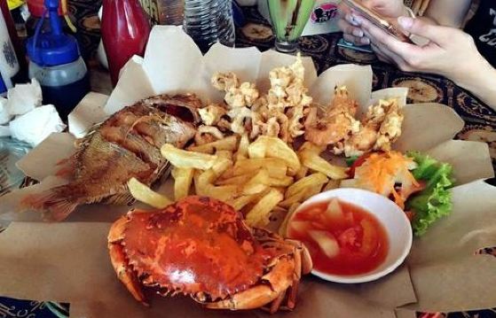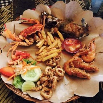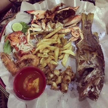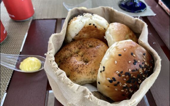 【环境】在岛上靠近水屋区,餐厅风景如画。 【口味】前餐面包送的,点了烤鱼口味不适合中国胃,鸡翅不错,牛排可以。儿童的意大利面送的。 【服务】中午人少,服务老好了。
