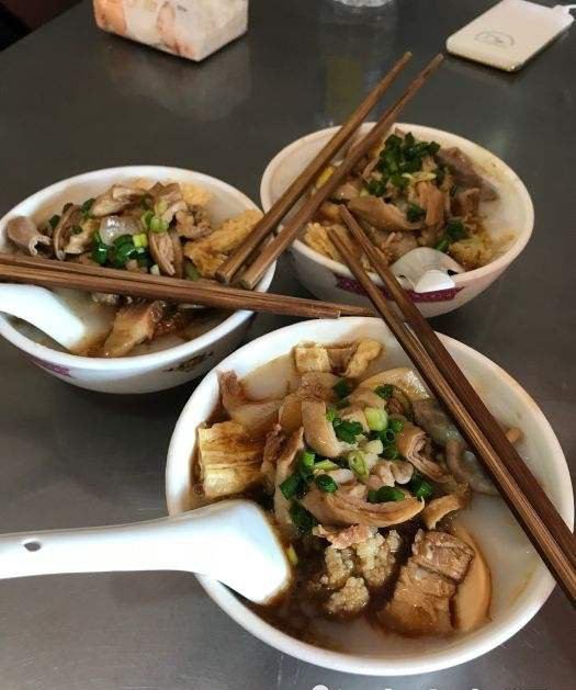 汕头老城区,人民广场不远,市政府旁边小路,一排都是吃饭的小店,店面不太显眼,走得快会容易错过,大约在中间段的地方。「潮州粿汁」份量实在大份,粿汁米香味浓郁。「卤味拼盘」图片上一大份的卤水拼盘,卤得刚刚好咸香美味。