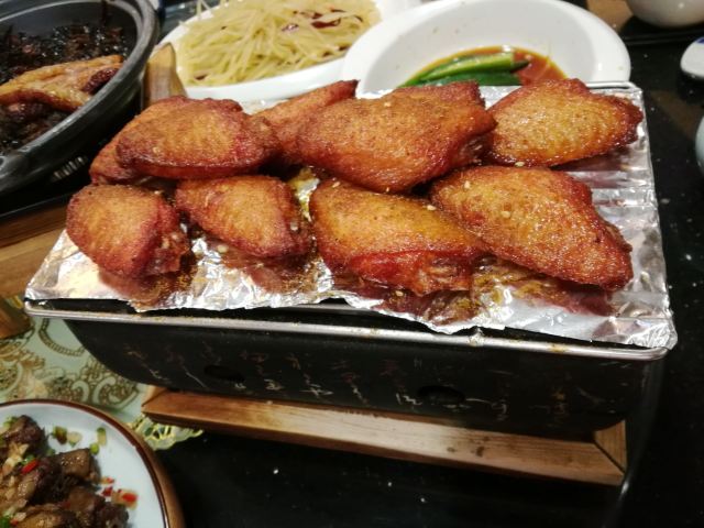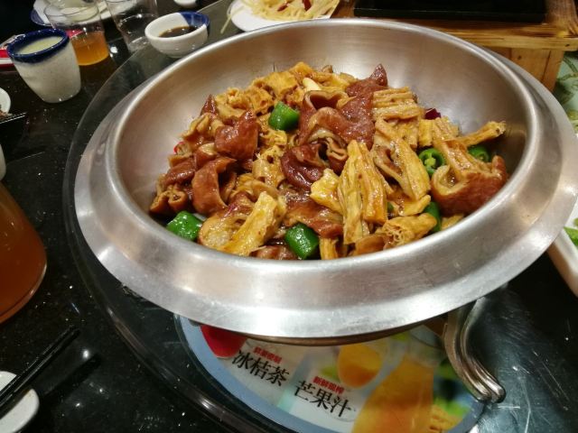 杂粮素方,锅贴,酸汤肥牛,干锅花菜,铁板水晶粉,炭烤鸡翅,蜜枣银心,酸菜鲈鱼,铁板牛肉,蒜泥白肉,四喜拼盘,碳烧猪颈肉,糖醋里脊,馍夹肉