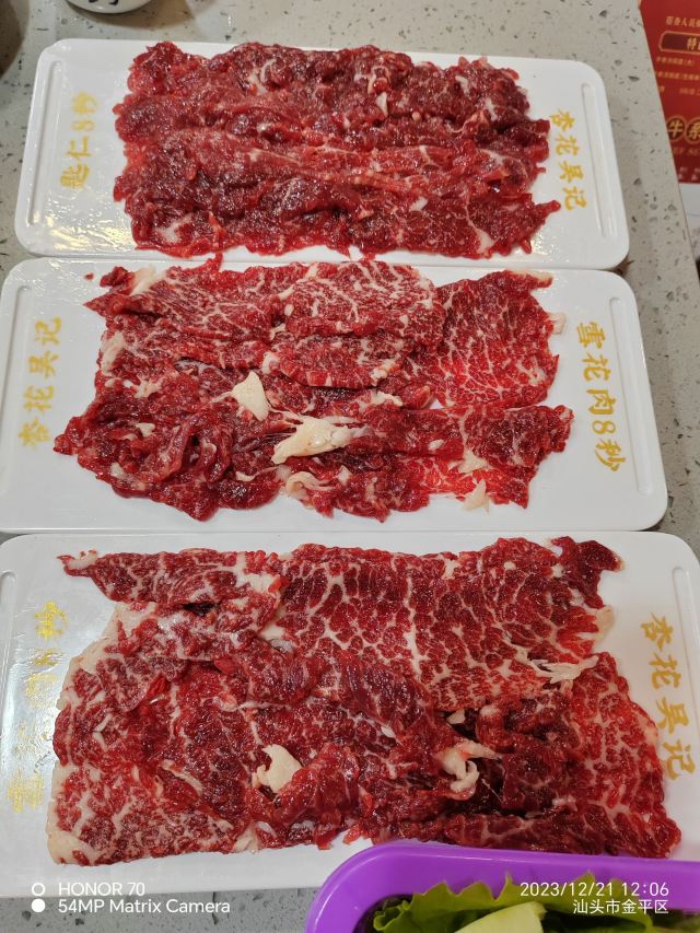 杏花吴记牛肉火锅 在汕头金平区,轮候时间 要半个多小时才能入座。 主打牛肉美味浓郁,细分牛每个部分,在碟上能清楚看见牛的部分及需要煮的时间,但价钱太贵。
