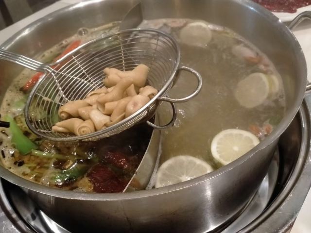 Lu Dao Hot Pot一直听说潮汕的卤水火锅别具特色,值得一试。这次到汕头就去试了一下。双味鸳鸯锅 一边卤水,一边麻辣,一次吃双味:野生沙泸虾虾很新鲜,插着竹签都在跳动;厚切粉鹅肝 确实很粉,口感类似吃芝士,嫩滑香糯;生鹅脚 要放进卤水火锅中煮一段时间,卤香味浓。总的说来,卤水味香,食材新鲜,可以一试,但价格也不低。