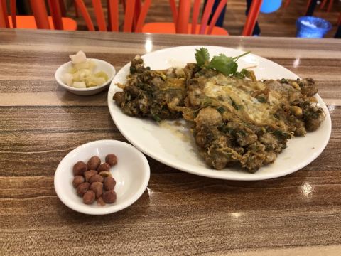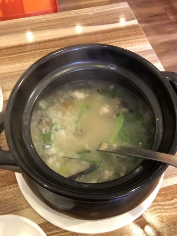 看评价不错就过来吃的一家餐厅。第一眼看招牌,以为是个洪字,仔细看才发现右半边是个井字旁。下午到的店,人不多,上菜也快。蚝烙和蚝粥都是20块钱一份,一个人吃得很饱。味道不错,性价比超高。
