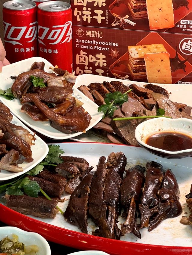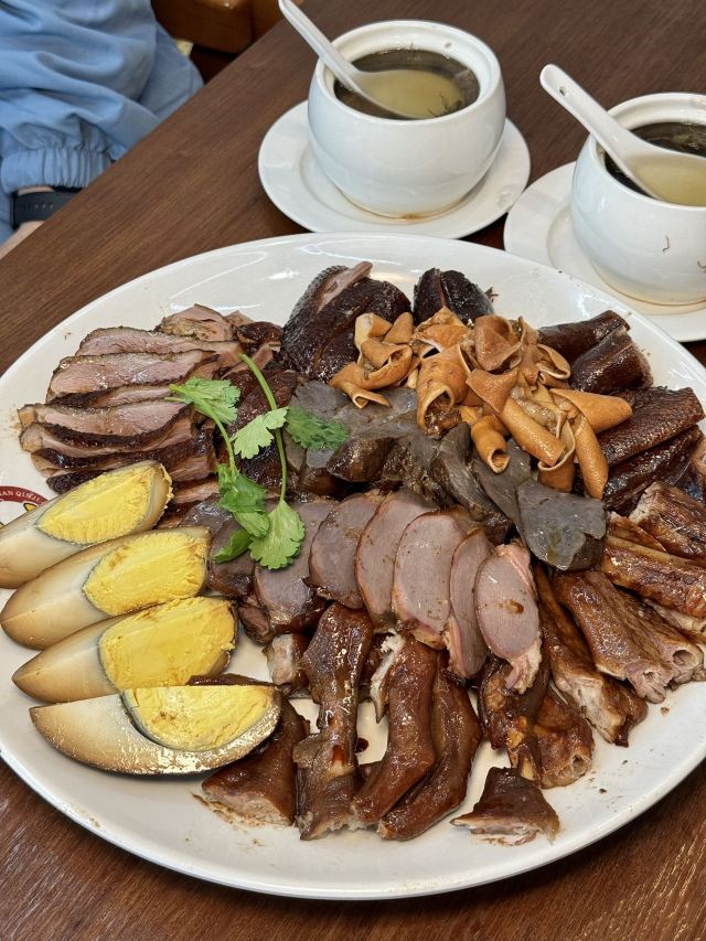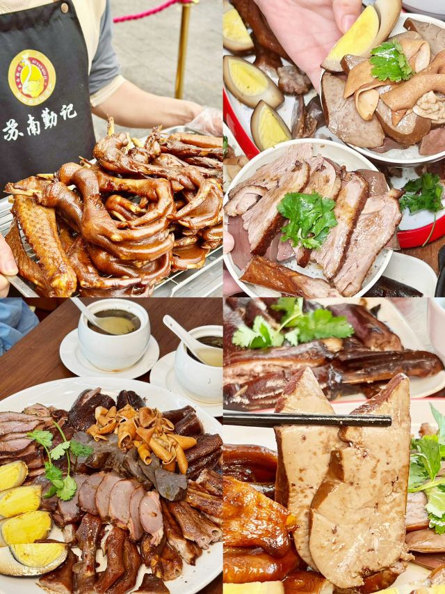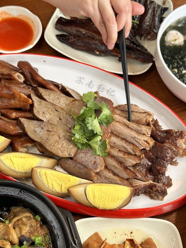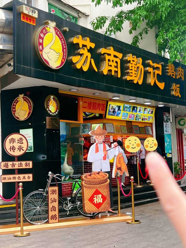 SU NAN QIN JI一直以来都听说汕头这家苏南勤记卤鹅非常好吃!这次刚好在这边旅游就来试了一下,后悔怎么没有早点过来!!他们家是当地的老字号了,开了很多分店,只有总店有堂食哦!性价比很高,人均几十就可以吃到饱!都是采用澄海狮头鹅,再用他们家特制的卤水汤做出来的卤鹅真的正宗又好吃!听说他们家还上过很多次央视频道哦!而且还有自家独创的卤味饼干在其他地方吃不到!很适合带回去给家人做礼物!还有紫菜汤、炖汤等很多潮汕小吃可以尝试!