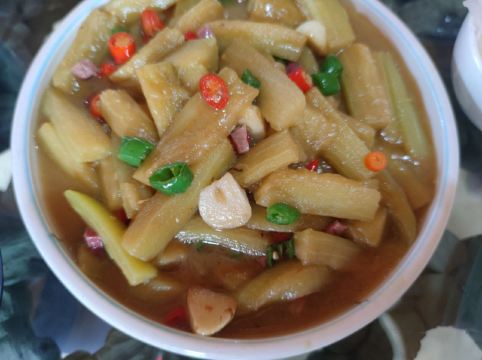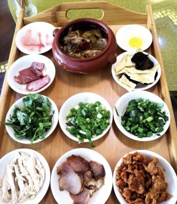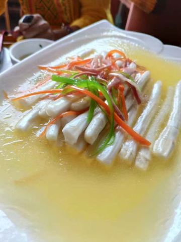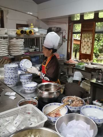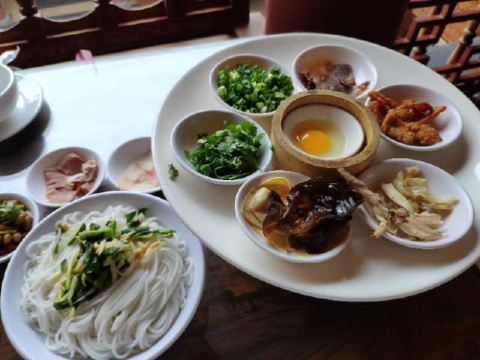 传统过桥米线,三丝炒芽,汽锅土家鸡,烧卖,哈尼罗非鱼加辣,草芽炒肉,三丝扒草芽,炸排骨,小炒牛肉,凉拌米豆腐,梯田鱼,蛋卷,火腿片,云南米线,猪蹄子,猪脚米线,哈尼罗非鱼(不放辣),土豆泥
