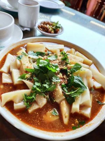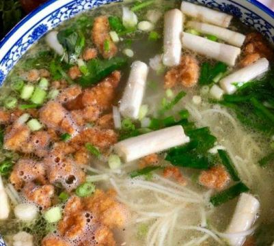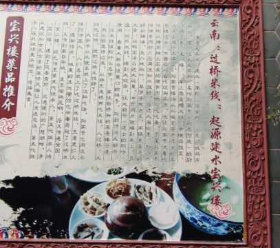 食色云南云南过桥米线有两大传说,一个是建水的宝兴楼说,一个是蒙自的状元过桥说; 宝兴楼是传统过桥米线的发源地位于云南省红河州建水县广慈湖畔,由最初宝兴楼的创建人刘家贵(别名刘家庆)在清朝道光年间发明后传承至今,据说是晚清时期的建水进士李景椿教他用吃涮羊肉的办法吃过桥米线,一试很成功,取名的时候,李景椿说:“我从锁龙桥过来,从桥东来桥西吃米线,人过桥、米线也过桥,就称之过桥米线好了!”从此,过桥米线传到了蒙自、昆明等地,逐步成为云南第一品牌的小吃。 宝兴楼过桥米线到今天已经是第五代了,五代人传人刘玉珠、陈昆把宝兴楼搬迁到广慈湖畔,味道纯正、环境一流、文化氛围浓厚,古色古香的门头、装修、湖景包房,让人很容易感受到百年前过桥米线的韵味。 宝兴楼的过桥米线,配料不多、但是选材很好,生鱼片、汽锅鸡、火腿片、鸡肉丝、香酥、韭菜、葱花、芫荽、木耳、豆皮、鹌鹑蛋,每一样食材都很香,肉有肉味、菜有菜味,严格熬制的高汤不放现代调味品,吃完以后不会口干舌燥。 宝兴楼早餐、午餐主要营业传统过桥米线,中餐、晚餐还有炒菜、卤菜、蒸菜、凉菜、烧豆腐、烧卖、面食、果汁冷饮等,可以品尝建水当地风味美食。