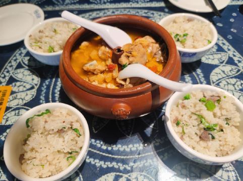Xiang man lou (lin'anlu)第二次来建水古城玩,必到的食店之一!好多人,需要等一下才有位置! 店铺古色古香,单是环境都值了,而且不贵! 本地特色: 炒芽,建水特色菜,爽脆清甜,适合广东人口味,推荐; 酥炸小马鱼,小小的入口酥化,香口,好好吃啊; 煎莲藕饼,这个莲藕很粉糯,好吃好吃; 牛肉凉片,听说建水牛肉出名,就点了,不会韧,蘸上秘制酱汁,一点点酸辣很开胃,推荐; 汽锅鸡,本来是建水特色,我感觉肉质一般,应该还有最好吃的食店; 麻婆豆腐,好辣,广东人吃不惯,好浪费啊; 萝卜咸骨汤,好甜软; 炒菜心,有菜味! 店内出品选择好多,也很多适合广东人口味,再有机会来建水,还是会来的!
